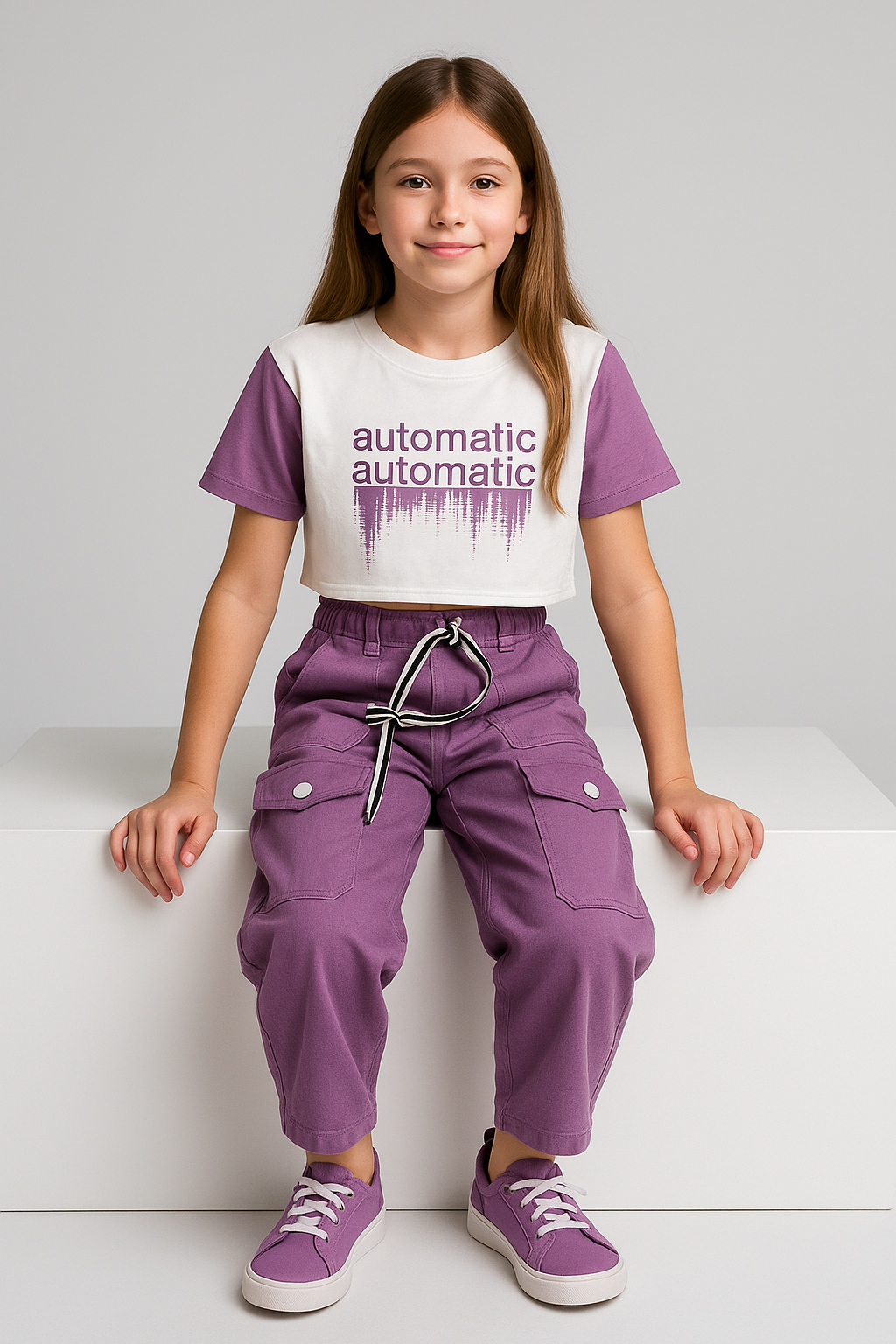 Bottoms: Relaxed cargo pants with adjustable drawstring waist